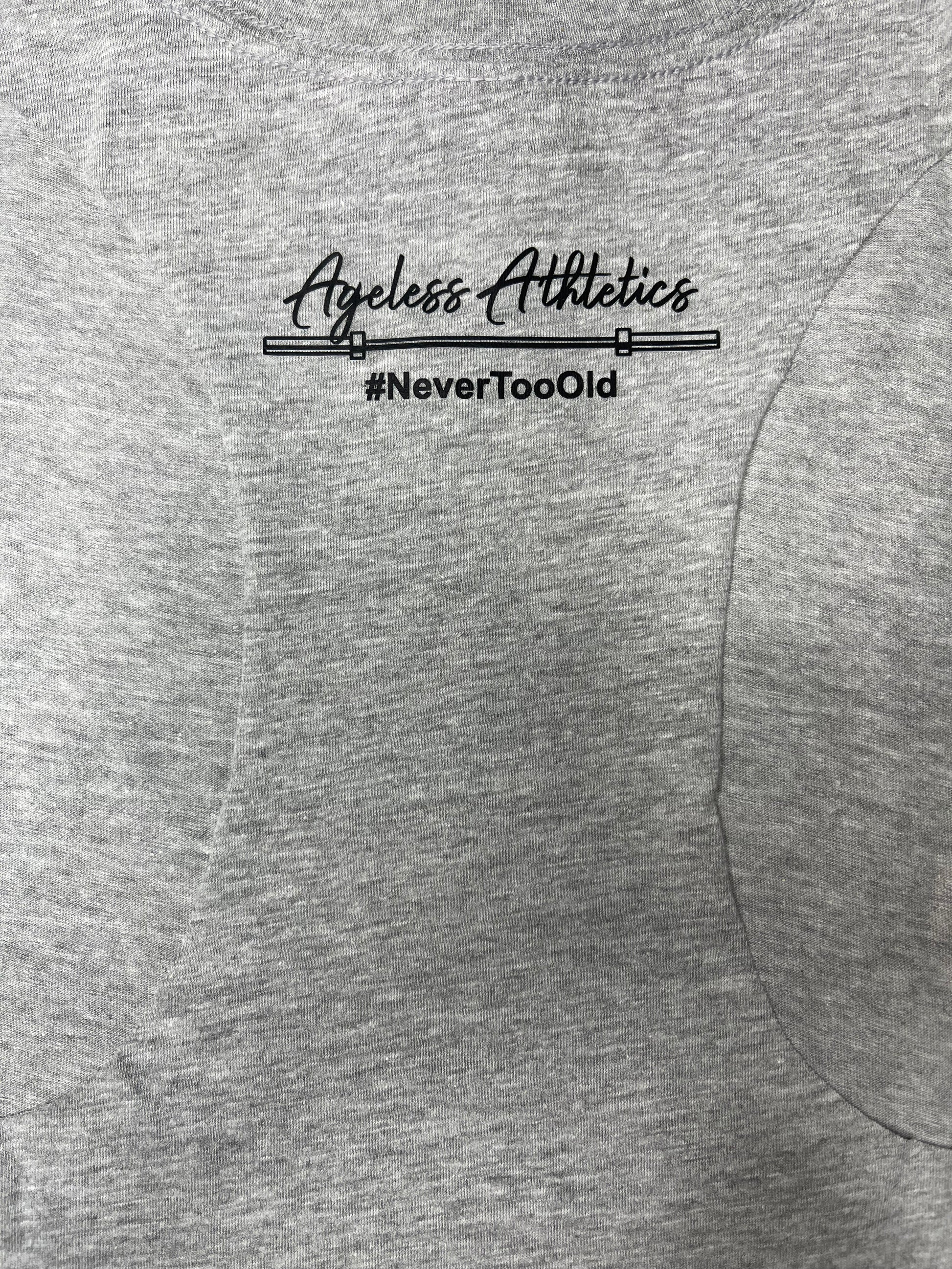 Y’all.  THIS SHIRT.  Cool, collected, and strong as you know what - JUST LIKE YOU.  This graphite AGELESS tee is your ride-or-die for WODS, rest, days, and everything in between. The color says "I mean business", but the fit says "I'm strong, but I like to be comfy." LOL.  This fabric is comfortably soft with just he right amount of stretch.  It moves with you through squats, snatches, and sass. Because aging strong NEVER goes out of style, and neither will this tee!